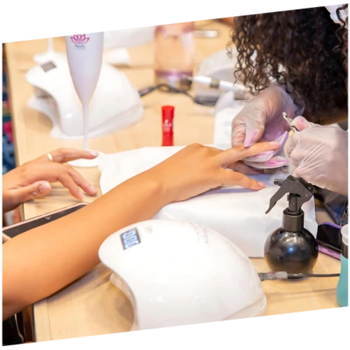Atendimento cuidadoso para mãos e pés, com limpeza precisa e esmaltação impecável.